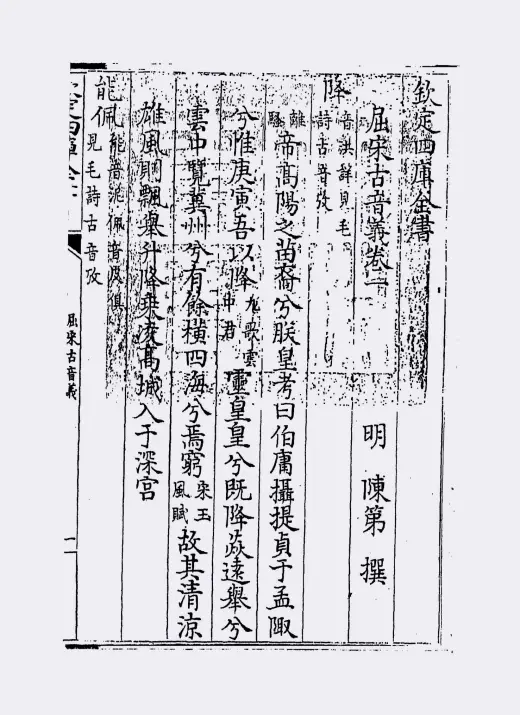 陈第通过分析《诗经》用韵规律及同时期文献,系统论证古音与今音的差异性。该书建立了以历史时空观为核心的音韵学体系,虽未构建完整古韵部系统,但为清代古音学研究奠定文献考证方法论基础。