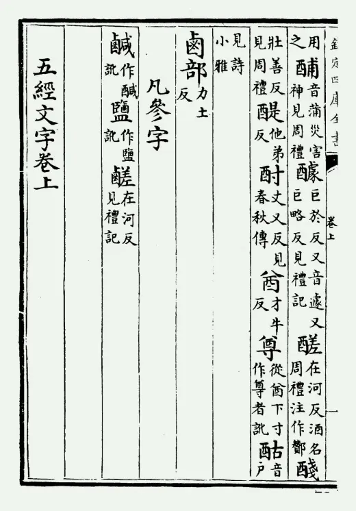 《五经文字》是唐代张参编纂的汉字字形研究著作,成书于大历十一年(776年),收录3235字,按偏旁部首分为160部,涵盖《周易》《尚书》等五经及《论语》《尔雅》中的文字,旨在规范经传文献中的楷书形体。书中采用反切注音,参考《说文解字》《字林》等典籍校订字形,对形近字、异体字进行辨析,确立了经书文字的标准写法。