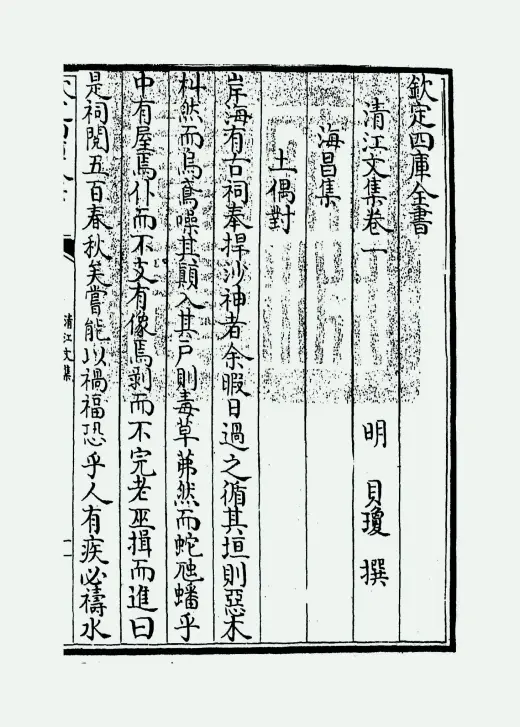 《清江诗集》是明代诗人贝琼创作的诗文集。贝琼字廷琚,元末中举后隐居殳山,明初参与编修《元史》,后任国子监助教。该集含诗集十卷、文集三十一卷,原为钞本,清康熙年间由金檀刊刻成书。