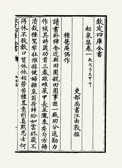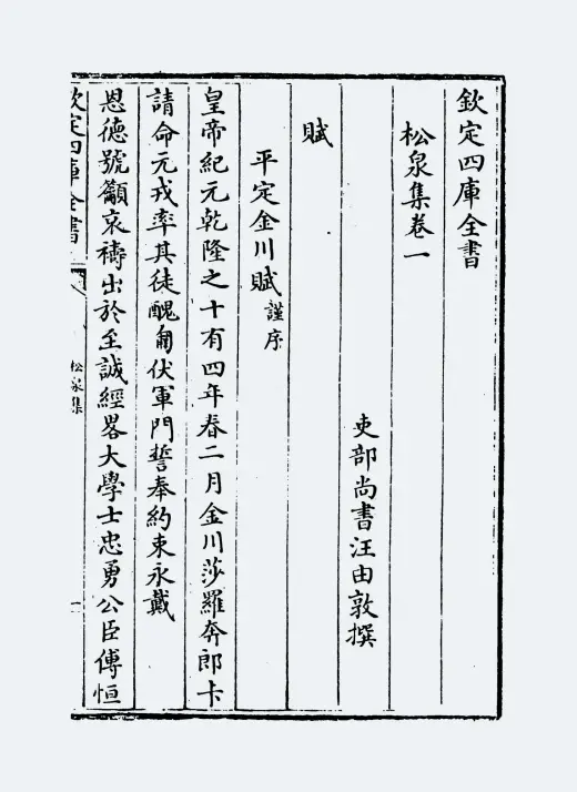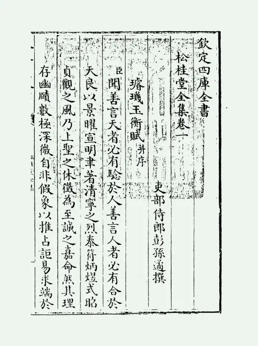 《松桂堂全集》是清代文学家彭孙遹创作的诗文别集,全书共37卷,收录其诗、文、词等各类作品。该集由彭孙遹之子彭景曾于乾隆八年(1743年)首次刊刻,与《南[wang]集》三卷、《延露词》三卷合编。四库全书馆于乾隆四十五年(1780年)校勘后收录于集部别集类,提要称其"馆阁诸作尤瑰玮绝特",被视作清初台阁文学典范。