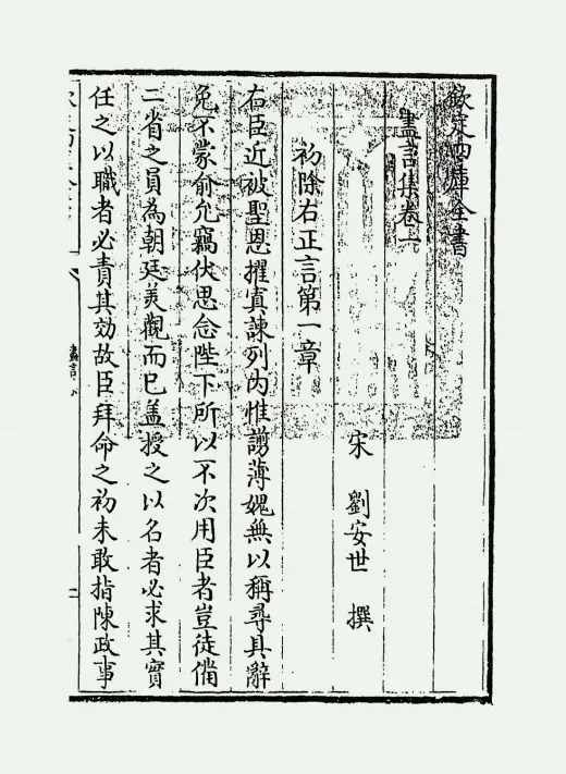 《尽言集》是北宋谏官刘安世撰写的奏议集,成书于哲宗年间。刘安世师从司马光,历任左谏议大夫等职,以刚直敢谏闻名,时称“殿上虎”。全书十三卷专收其任谏官期间的弹劾奏章,内容涉及哲宗朝蔡确、章惇等政治事件,保留了大量未被正史记载的时政细节。
