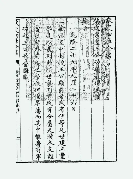全书按乾隆二十九年上谕要求编纂,记载代善、多尔衮等宗室成员的封爵沿革与军事活动,包含乾隆四十三年复封睿亲王爵位等史实。内容涉及清初八旗制度及宗室军事管理体系,为研究清代宗室制度提供原始文献依据。