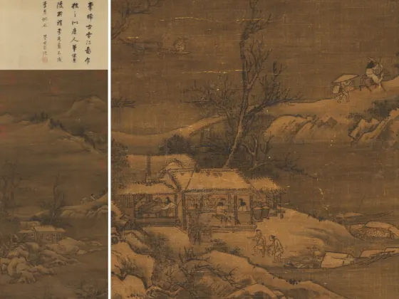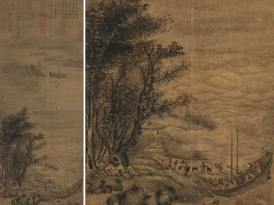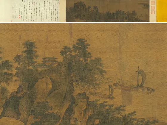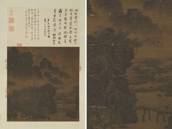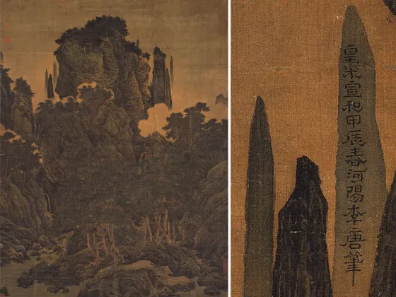 ——宋,李唐,烟岚萧寺,轴,绢本,本幅51x49.5 CM;诗塘 26x49 CM , 台北故宫博物院藏。