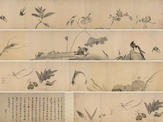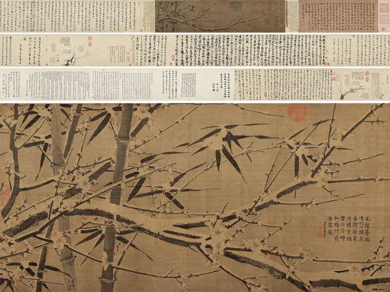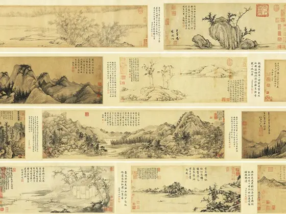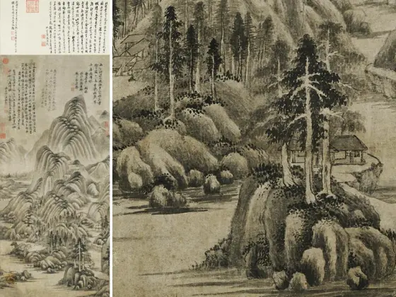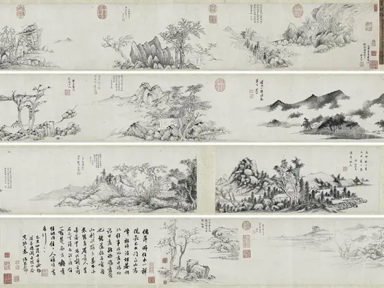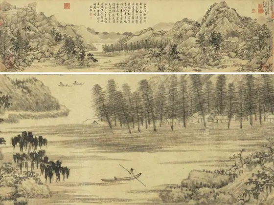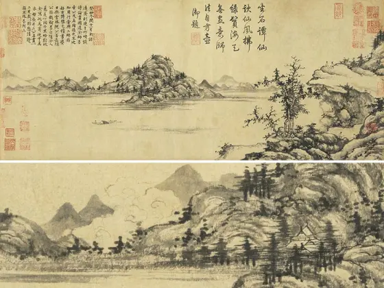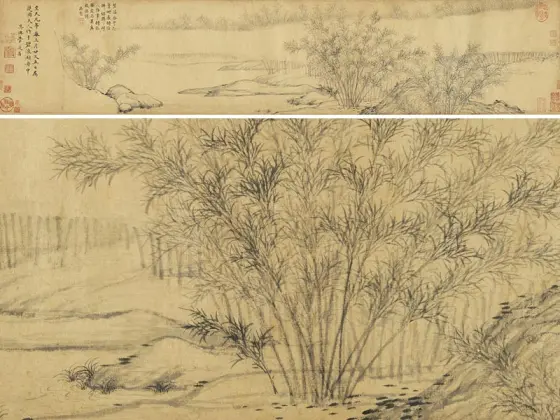 ——元人集锦卷,马琬春山清霁,马琬,元顺帝至正二十六年(1366年),27x102.5厘米,纸本,台北故宫博物院藏。