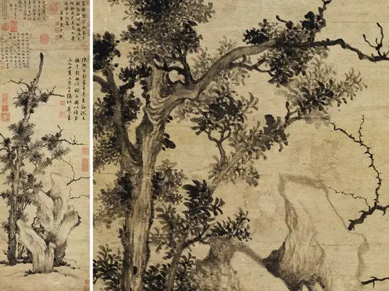 人物衣纹描法(减笔)、苔点、皴法、披麻皴、写意。