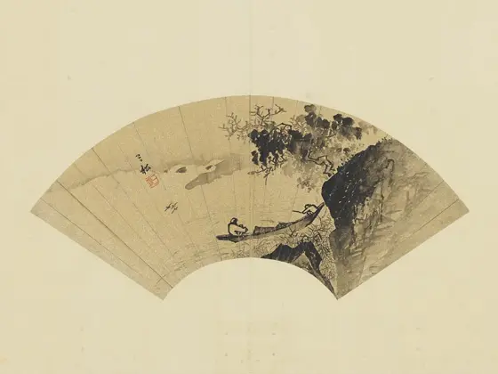 马琬,作品见于元至正壬午、丙午间(—一三四二—一三六六—)。金陵人,字文璧,号鲁钝。善山水,工书与诗。每遇佳山水,必托之豪素,辄自题诗,时称三绝。高山层层,林木长长矗立,清溪蜿蜒,渔舟摇摇,山村亭阁,曲径相通,笔墨滋润,体会出大地草木萌生。全幅结构皴法,大抵出于元黄公望富山居图,尤以远山丘陵起伏,近者淡远者浓,画法极为相似。