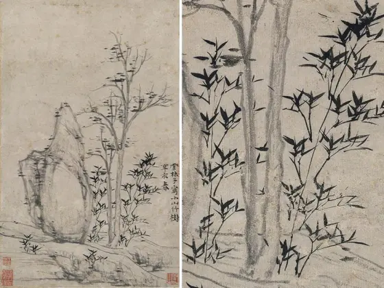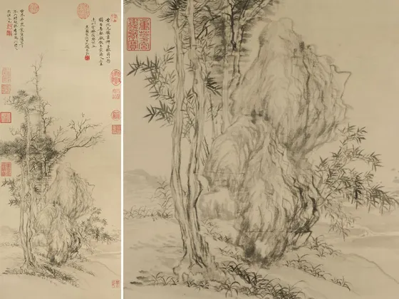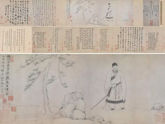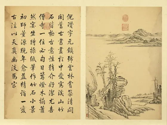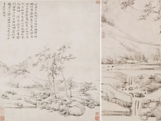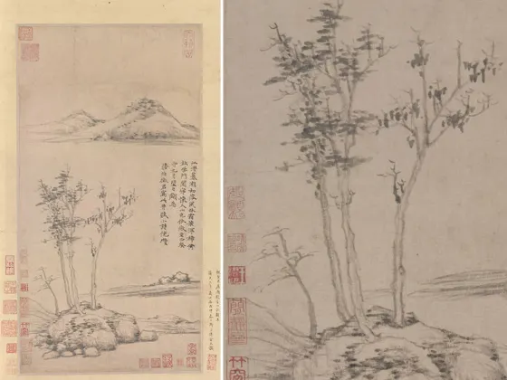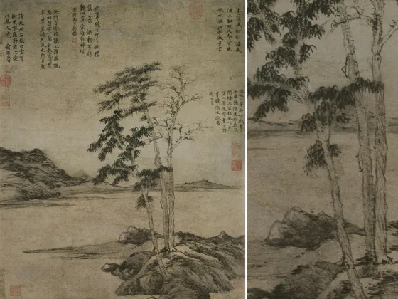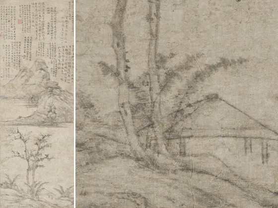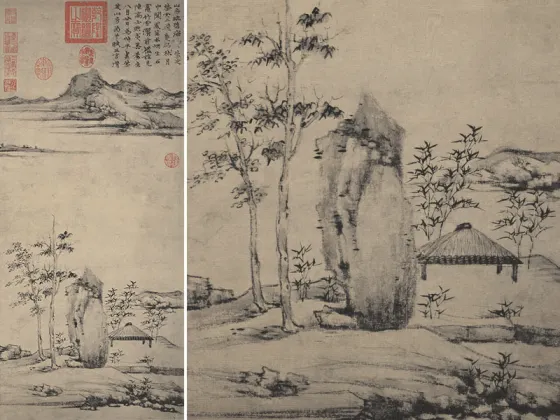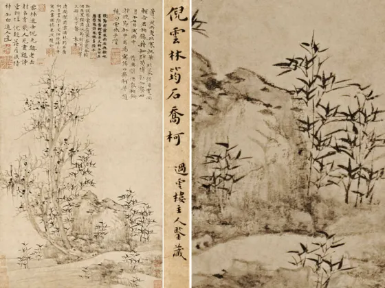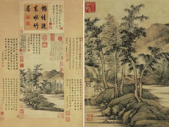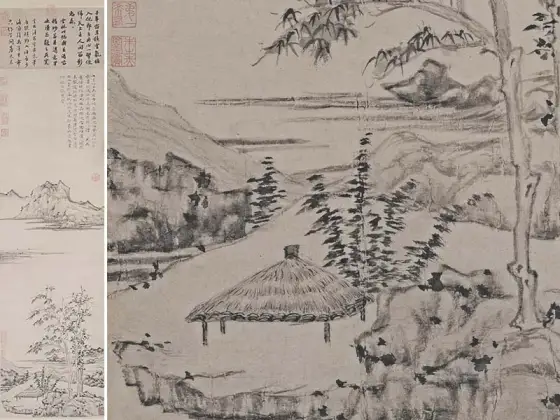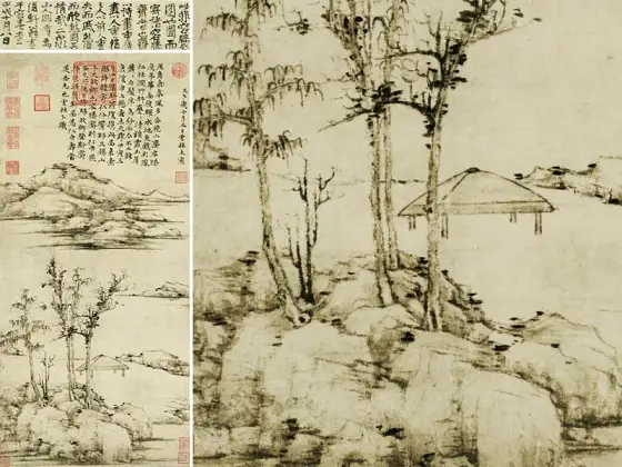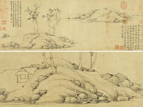 ——元人集锦卷,倪瓒安处斋图,倪瓒,纸本,25.4x71.6厘米,台北故宫博物院藏。