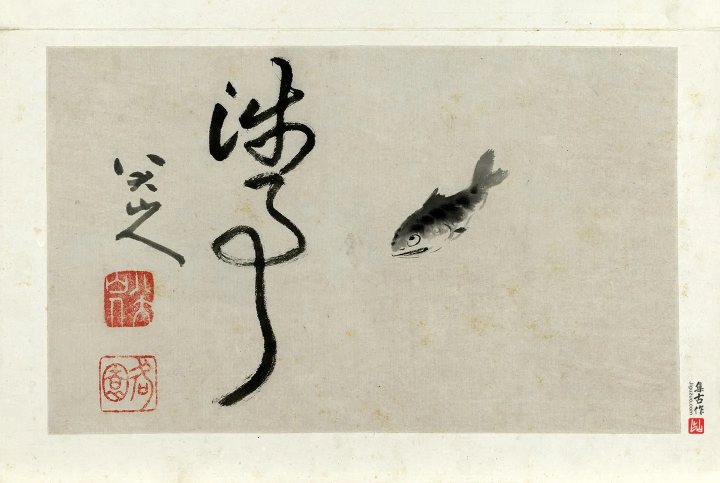清代,八大山人,清朱耷水墨写生册,鱼,页,清圣祖康熙四十年(1701年),纸本,水墨,本幅24x39厘米,台北故宫博物院藏。