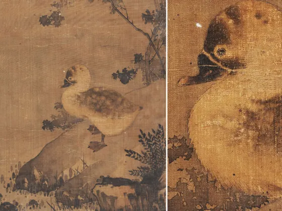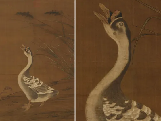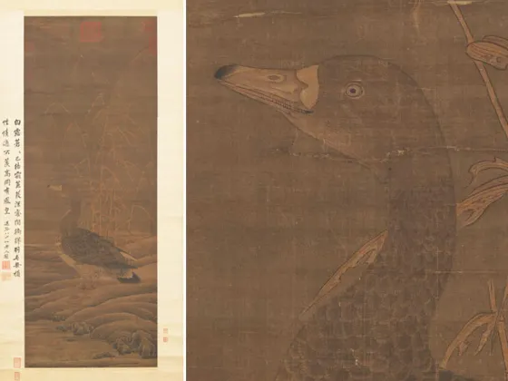 ——宋·崔白·秋浦蓉宾轴, 崔白 , 149.1x95.5 CM, 丝绸 ,台北故宫博物院藏。
