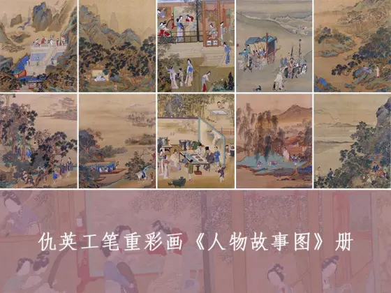 仇英工笔重彩画《人物故事图》册(共10开)