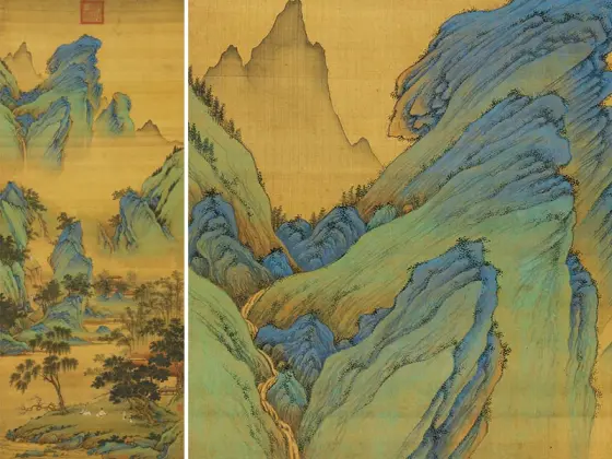 仇英青绿山水《春山吟赏图》
