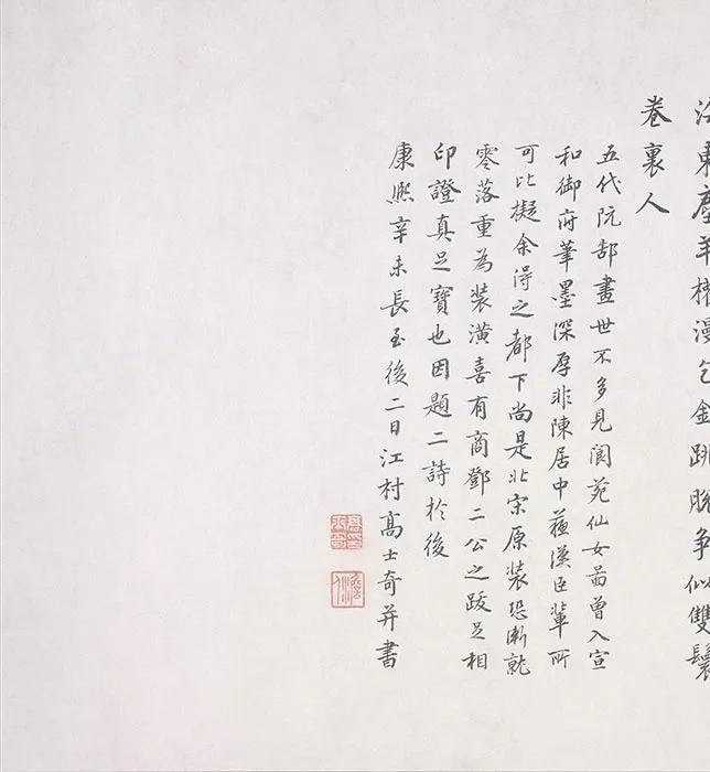 该图卷有清乾隆帝题诗前后隔水有高士奇、乾隆、嘉庆、宣统内府诸收藏印记共22方,残印6方。