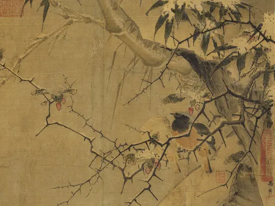 马麟花鸟画《暮雪寒禽图》页