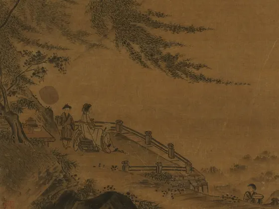 马麟《秉烛夜游图》纨扇页