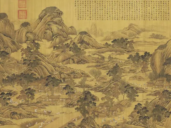 唐岱本幅楷书:仿李昭道,臣唐岱恭画。印记: 臣唐岱、恭绘。