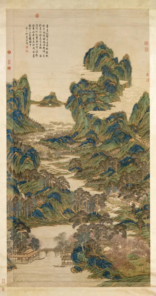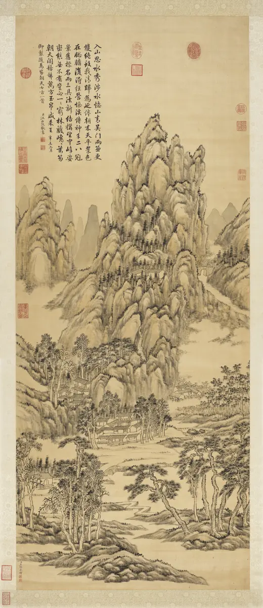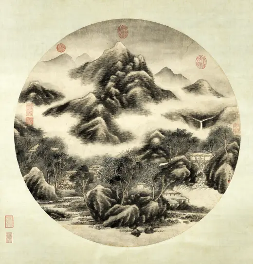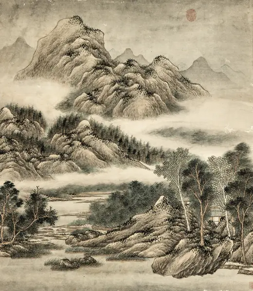清代画家王炳的《山水册》,为一套八开水墨小品,分别描绘了八种不同的山水意境:松岩、柳溪、云崖、林屋、雨山、泉磴、烟峦、云径。每一开皆以简净的笔墨、空灵的布局,捕捉自然之片段,或见松风倚岩,柳色拂溪,或写云崖隐现,林屋深幽,雨意迷蒙,泉石清响,烟霭起伏,云径迂回。整套册页虽尺幅不大,却意蕴隽永,充分展现了文人画家以水墨写意、寄情丘壑的审美旨趣与精神寄托。
