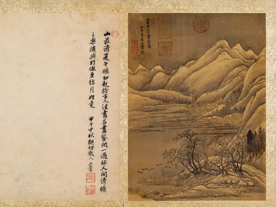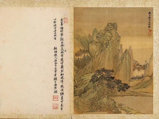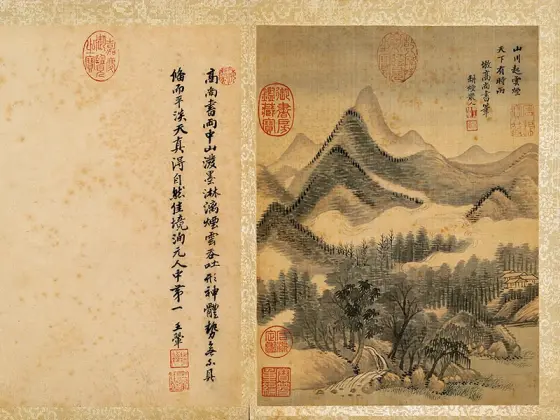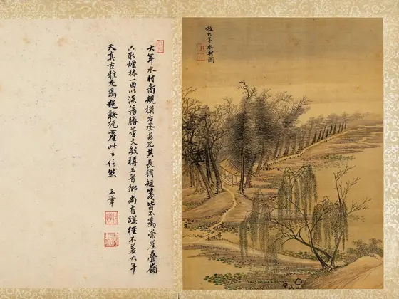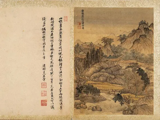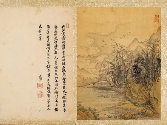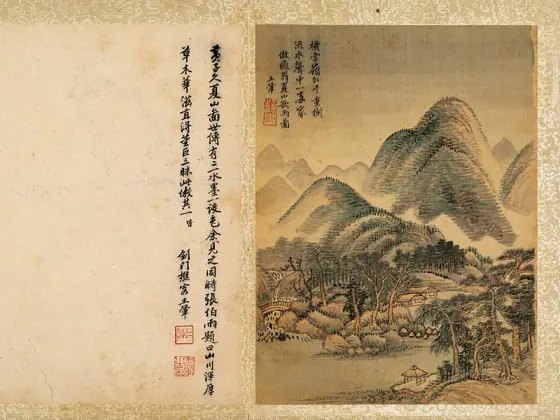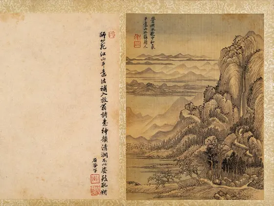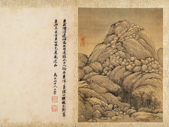 ——清王翚画山水册(上册),仿黄公望夏山欲雨图,页,本幅32x23.7厘米、对幅32x23.7厘米、本幅绢、对幅纸,王翚,1714年,台北故宫博物院藏。