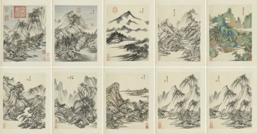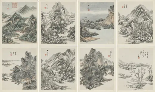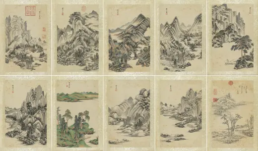 款识:庚子(一六六0年)小春。晴窗息纷。仿古十帧。不求形似。聊免画家习气耳。王鉴。
