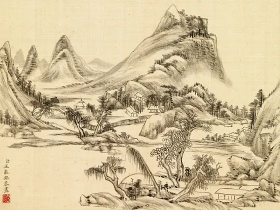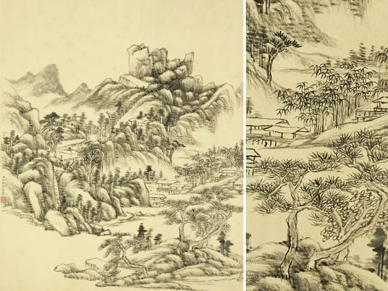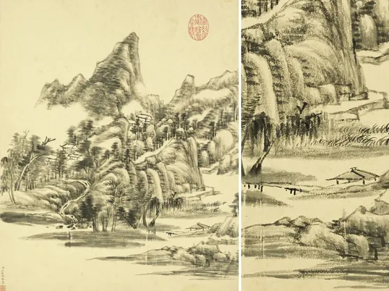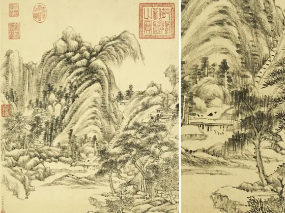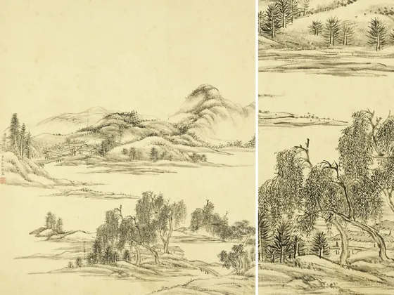 ——画幅集册,清王敬铭山水,页,王敬铭,32.6x40.7厘米,绢本,台北故宫博物院藏。