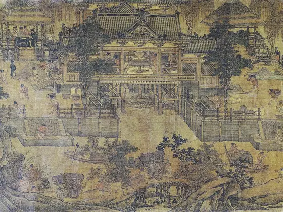 卫贤(生卒未详),五代南唐画家。京兆(今陕西西安)人。南唐后主李煜朝。为内供奉。初师尹继昭,后执学吴道子。善界画,长于楼观殿宇。盘车小磨。兼工山水,往往作巨石高崖,皴法不老,浑厚可取。画树木老干虬曲,竹丛繁密,很注意山石的整体效果与对比关系。