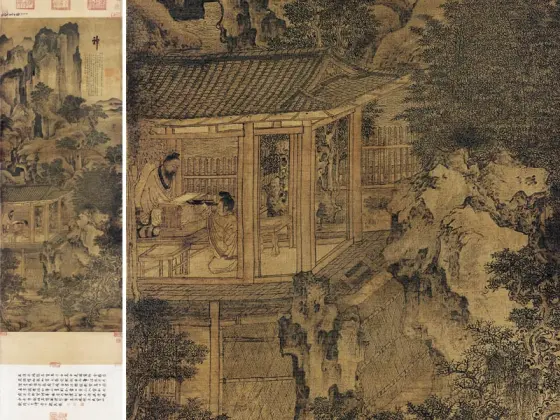 《高士图》五代画家卫贤的代表作品,此图原著收录于《宣和画谱》中,名为“梁伯鸾图一”,为卫贤所作《高士图》组画之一, 原图共六幅,画有黔娄先生、楚狂接舆、老莱子、王仲孺、于陵子和梁伯鸾,但前五幅已佚失,仅剩下描绘梁鸿与孟光的这幅。该画作集山水、人物、建筑画为一体,手法准确精细。