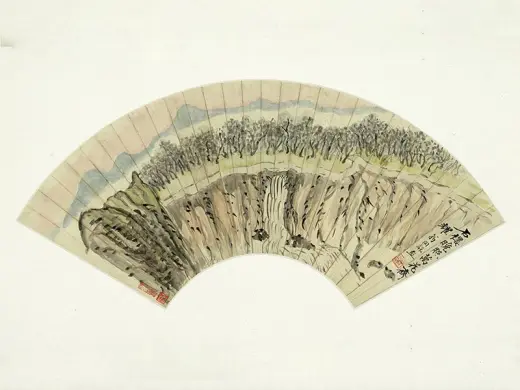 山华礧落图以自娱。有拾余残画付装者。戏集鲁峻碑字题之。松禅。