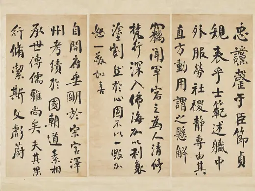 翁同龢(1830一1904年),江苏常熟人。字叔平,晚号瓶生,自署松禅,又署瓶斋居士。咸丰六年(1856)进士,为晚清名臣。书法早年学习唐代的欧阳询、褚遂良,兼取元赵孟頫和明董其昌的笔意,中年法唐之颜真卿和宋苏轼、米芾,并转习北碑及汉隶。