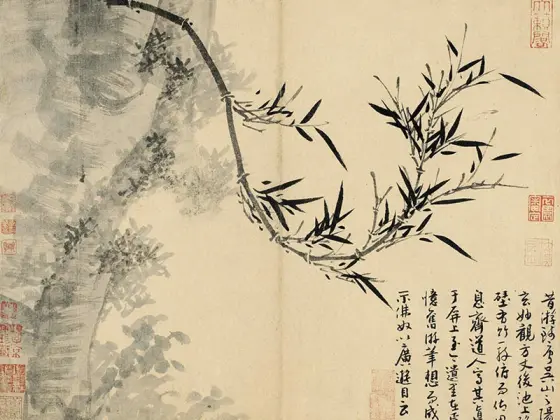 ——吴镇墨竹谱册,梅花翁寄兴,页。元代,元顺帝至正十年(1350年),纸本水墨,40.3x52厘米,台北故宫博物院藏。