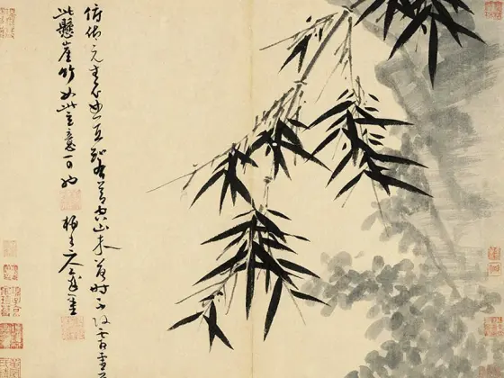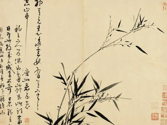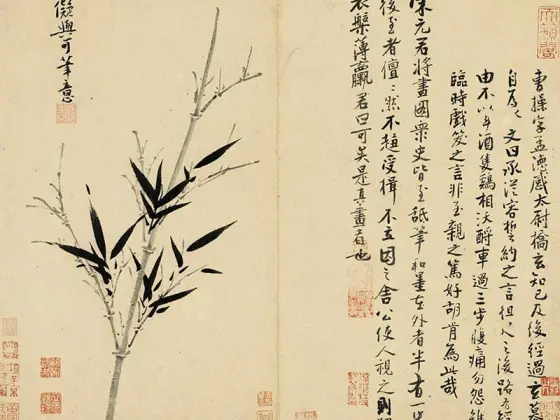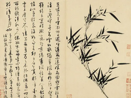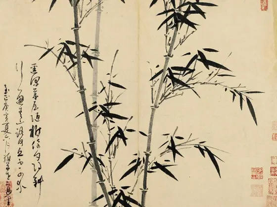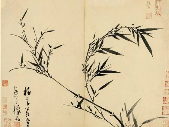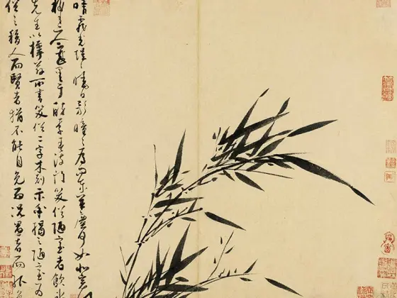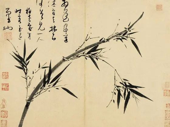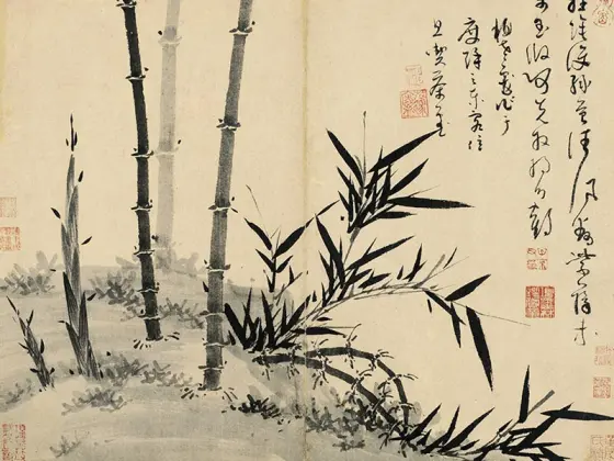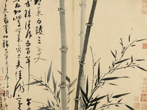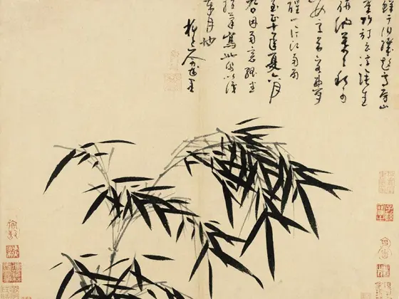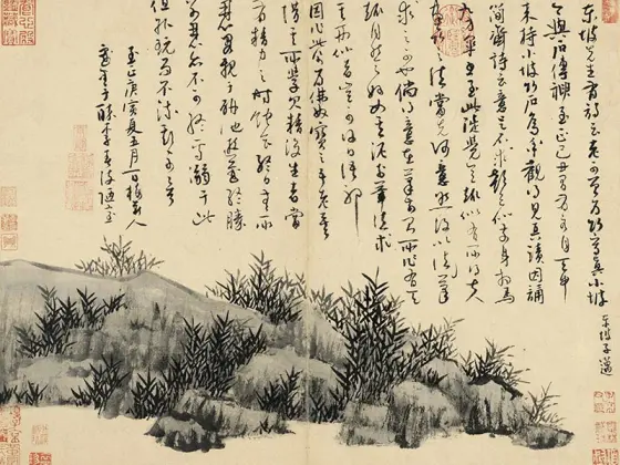 ——吴镇墨竹谱册,小坡竹石,页。元代,元顺帝至正十年(1350年),纸本水墨,40.3x52厘米,台北故宫博物院藏。