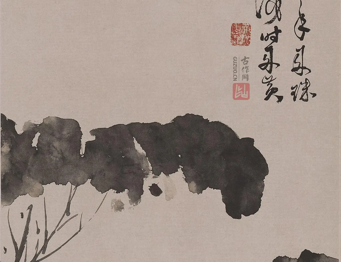 徐渭在这幅画中用狂草的书法题诗,字迹飞舞有势,字与画的风格,互相映衬,耐人寻味。题画诗的内容,反映了他悲观厌世、怀才不遇的心境。物我两融,寓真情实意于“深山石榴”的艺术形象之中。他在另一幅《墨葡萄》的题画诗中写道:“半生落魄已成翁,独立书斋啸晚风,笔底明珠无处卖,闲抛闲掷野藤中。”显然,这同样流露了他自叹落魄潦倒的心情。徐渭的艺术作品,往往表现他愤世嫉俗的心情,其中有不趋权贵的,有孤高自赏的,也有抨击社会的。总之,借助笔墨抒发胸中郁积怨恨,是他美术作品的特点。