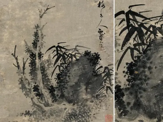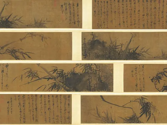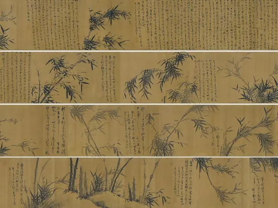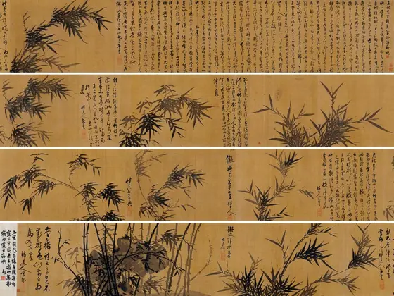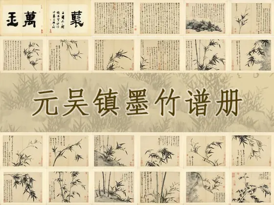 元吴镇墨竹册,一册21开(本幅20开20幅,前副页1开2幅),元代至正八年(1348年),纸本,本幅 34.3x44.3厘米,台北故宫博物院藏。