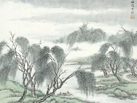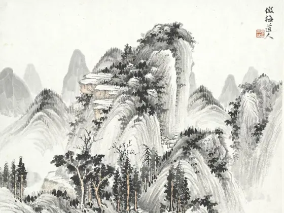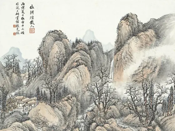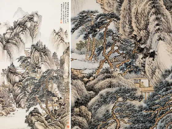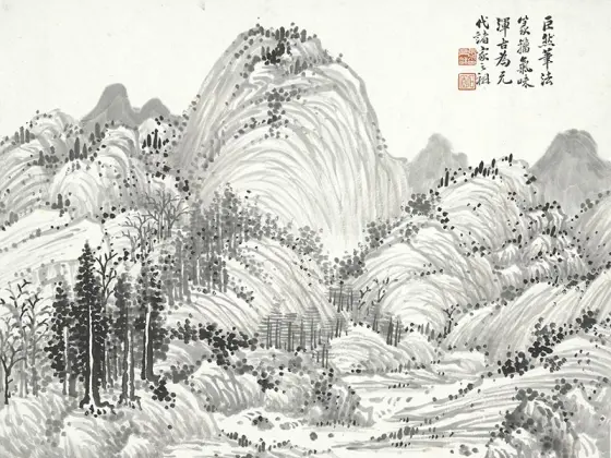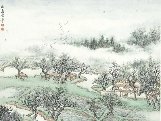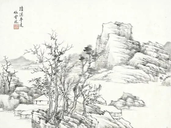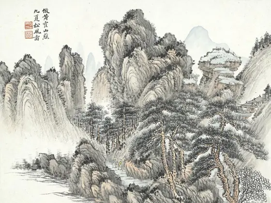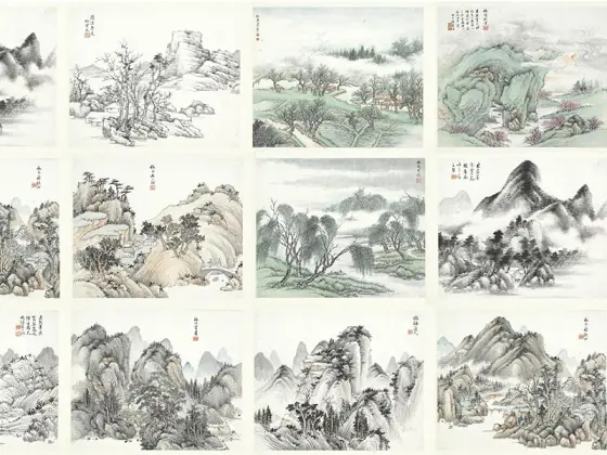 张克龢仿古山水册,一册12开12幅,近现代,张石园,本幅42.8x49.7 厘米,纸本,台北故宫博物院藏。包含张石园:仿惠崇山水、仿倪瓒山水、仿米家写意山水、仿赵令穰山水、仿白石翁山水、仿大痴山水、仿梅道人山水、仿江贯道山水、仿巨然山水、仿黄鹤山樵山水、仿耕烟散人山水、仿赵松雪山水。