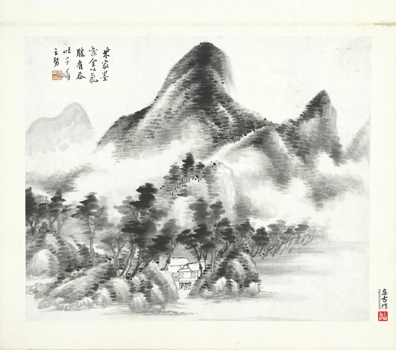 张克龢仿古山水册,仿米家山水,页,近现代,张石园,本幅42.8x49.7 厘米,纸本,台北故宫博物院藏。