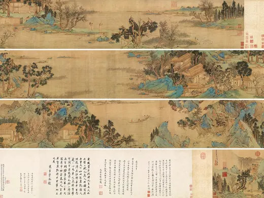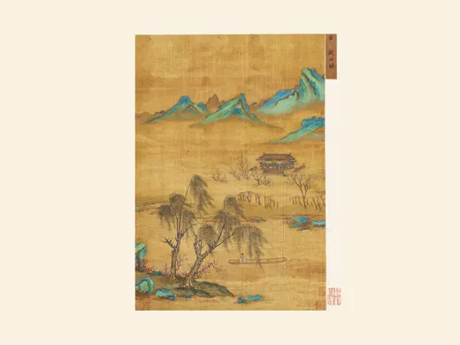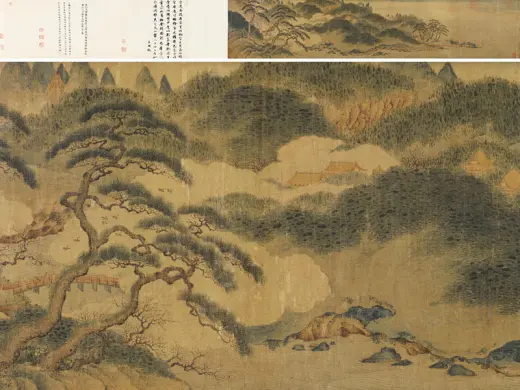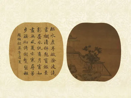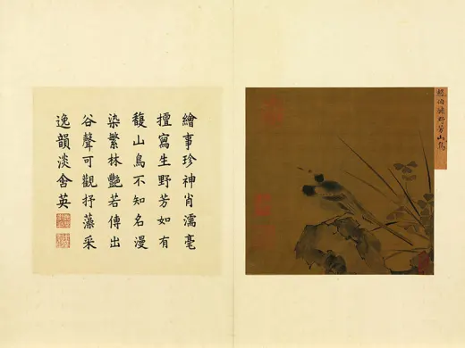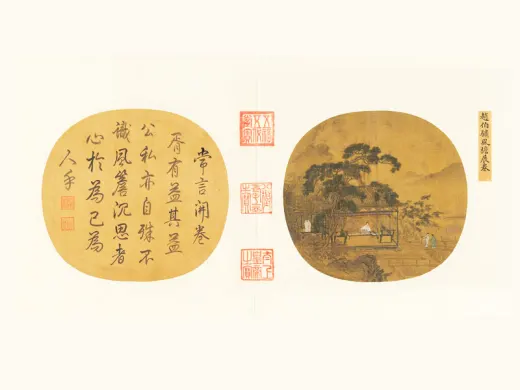 艺苑藏真册,宋赵伯骕风檐展卷,页,本幅24.9x26.7厘米、对幅24.9x26.7、全幅38.5x80,本幅绢、对幅纸,台北故宫博物院藏。