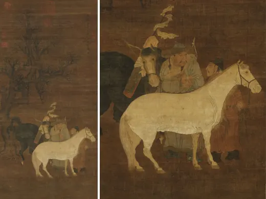 元,赵孟頫,双骥图,轴,元成宗大德三年(1299年),102.8x50.9cm,绢本,台北故宫博物院藏。