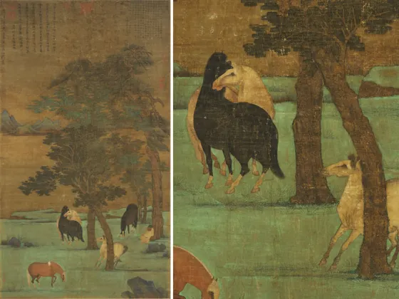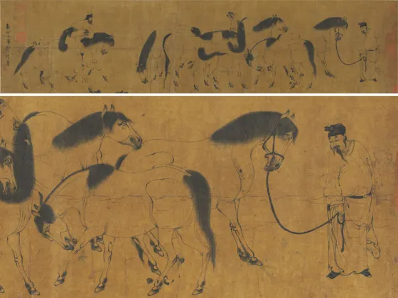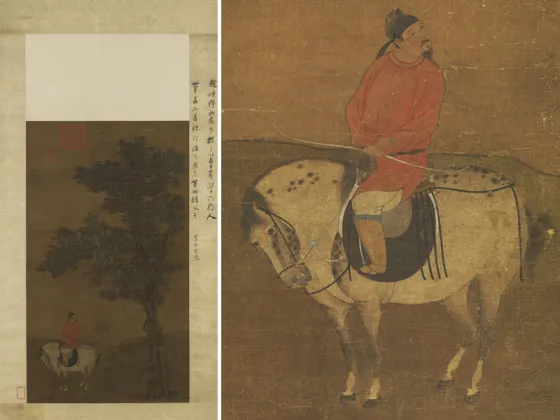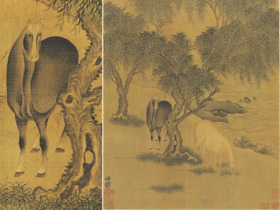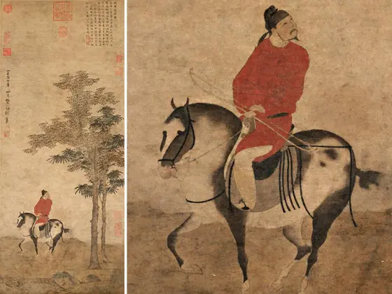 赵雍字仲穆,浙江吴兴人。生于至元二十七年(1290年),死于何年,未得数据。他是赵孟頫的儿子,官做到集贤待制。无论书法或绘画,都有很高的成就,以人马、竹石画得最好。