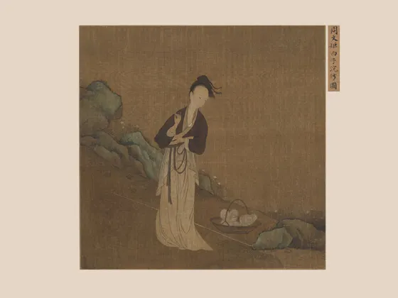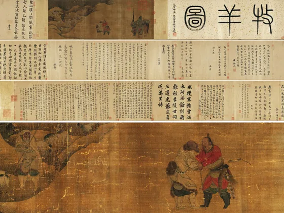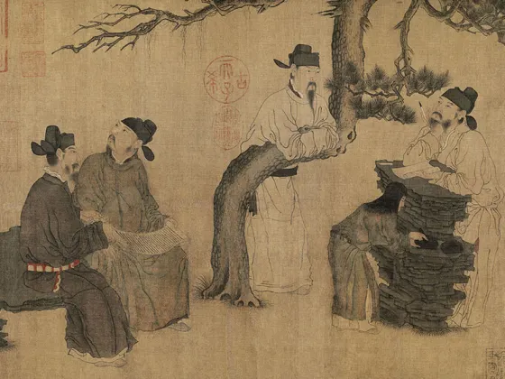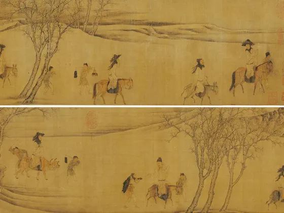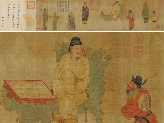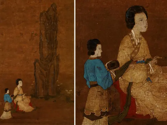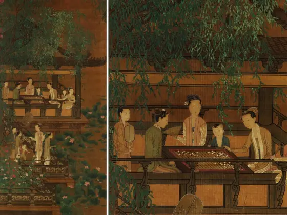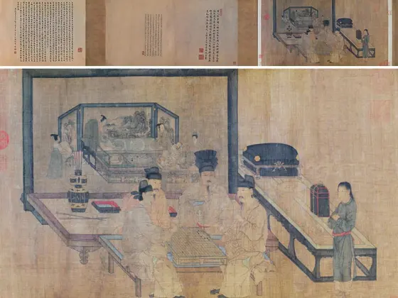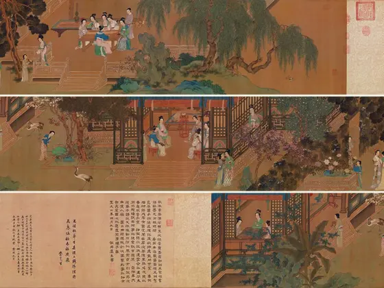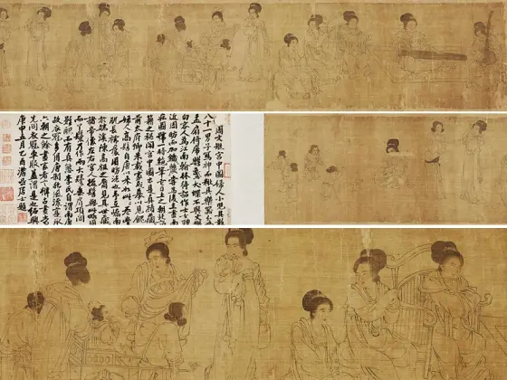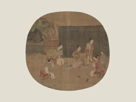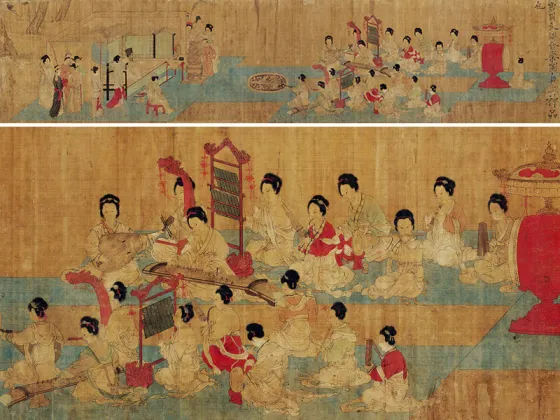 ——传五代南唐周文矩《合乐图》,绢本设色,纵41.9厘米、横184.2厘米,藏于美国芝加哥美术馆藏。