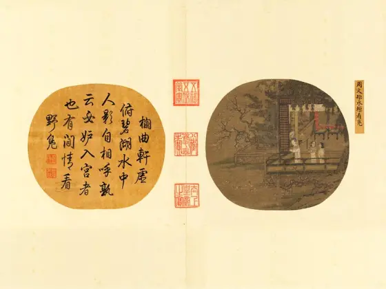 《合乐图》传为五代时期南唐周文矩绘。其描绘内容是皇室贵族在庭院里欣赏女乐演奏。该图人物画卷与同是五代时期大画家顾闳中的传世名作《韩熙载夜宴图》卷有重大联系。这不仅是因为此图在绘画风格上与后者极为类似,而且在画面内容上也符合画史事实。