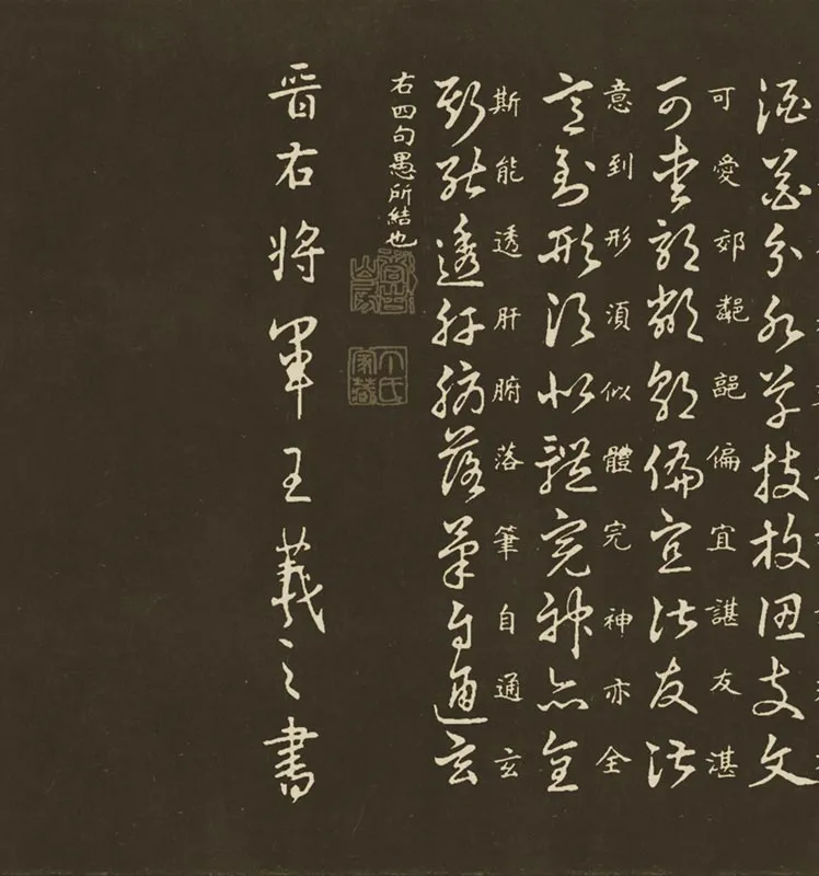 王羲之《草诀百韵歌》是明代韩道亨于万历四十一年书写的,此帖假托为王羲之所作,其祖本已无可考。《草诀百韵歌》是把比较通行的草字集中起来,找出它的结体和行笔中的某些规律,编成五字一句的韵文,以便于记忆。