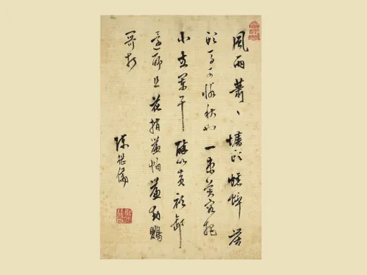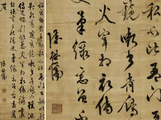元明书翰册,明陈继儒尺牍,陈继儒,草书,本幅一24x21.2、本幅二24x20.8、本幅三24x20、本幅四 24x20厘米,纸本,台北故宫博物院藏。