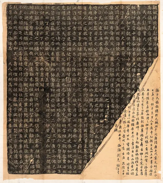 《北魏刁遵墓志》,全称《雒州刺史刁惠公墓志铭》,刻于北魏熙平二年(517年)。志石高约80厘米,宽70厘米,厚15厘米,正文共28行,满行33字,志阴分两列,各33行。清雍正年间出土于河北省南皮县,出土时一角已残缺,缺150余字,另有20余字漫漶不清。此志书法浑穆舒扬,提按使转雍容自得,用笔方圆结合,遒劲有力,起笔、收笔及转折回环之处变化多端,每字各具姿态。字形端正,结体茂密,圆腴厚劲,具有端庄古雅之美。此为哈佛大学图书馆藏本,是北魏碑志中的著名书法作品,具有重要的历史价值与艺术价值。