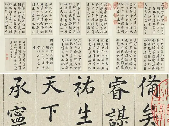 乾隆御览之宝、乾隆鉴赏、石渠宝笈、三希堂精鉴玺、宜子孙、石渠定鉴、宝笈重编、乾清宫鉴藏宝、嘉庆御览之宝、宣统御览之宝