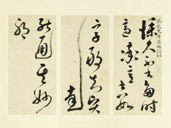 本轴未署年,以所钤「大宗伯印」推断,当作于崇祯五年(一六三二)抵京应宫詹大宗伯之召以后。董氏好杂临诸家,独造奥妙,求其神似于不似间。本幅临张旭郎官壁记,略得张书之意,运笔生动,表现出晚年本色书风。
