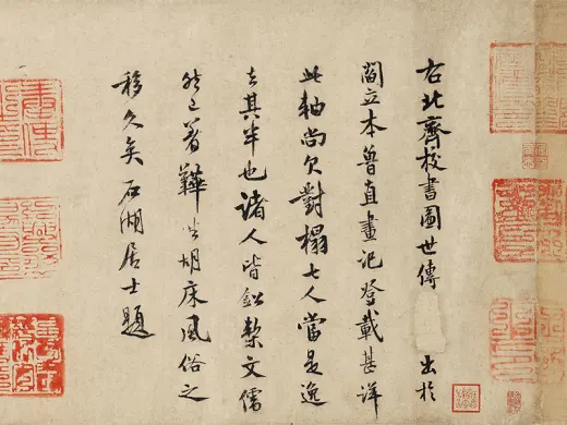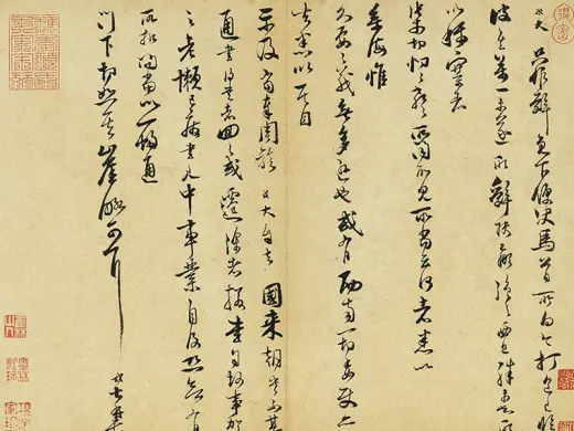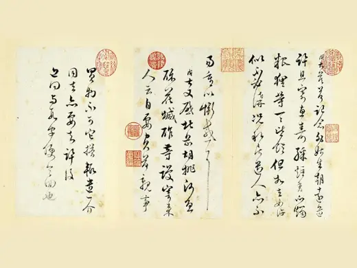 此帖为范成大所书信札。古人尺牍多言事,常随意而作。此帖用笔、结体及章法别出新意,用笔流畅自然,全篇一气呵成。结构紧劲,纵向取势,字体修长,字势欹侧多变,疏密有致,体现“劲挺飘逸”“古雅恬淡”和“浪漫不羁”的艺术特点。帖中钤有“云烟过眼”、“项笃寿印”、“项子长父鉴定”、“蝶庵书画”、“天恙”等收藏印。