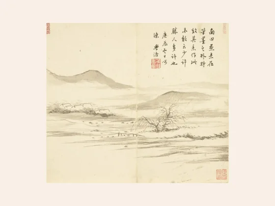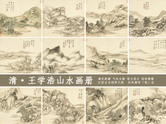 ——清,王学浩山水画册,顾沄行书题跋,页,27x30.5厘米,纸本,台北故宫博物院藏。