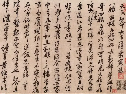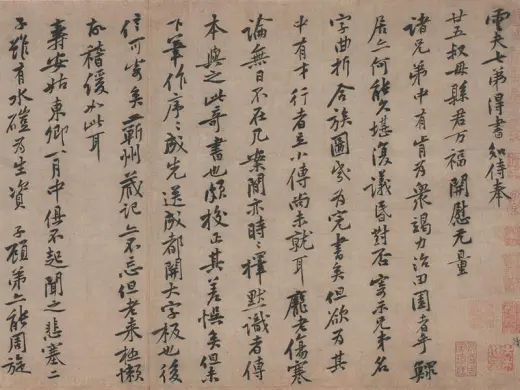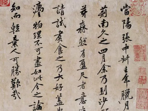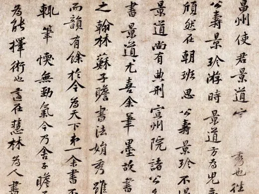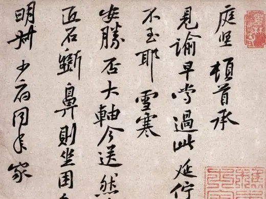 范文正公, 当时文武第一人,至今文经武略,衣被诸儒,譬如蓍龟,而吉凶成败不可变更也。故片纸双字,士大夫家藏之,世以为宝。至其小楷,笔精而瘦劲,自得古法,未易言也。黄庭坚书。