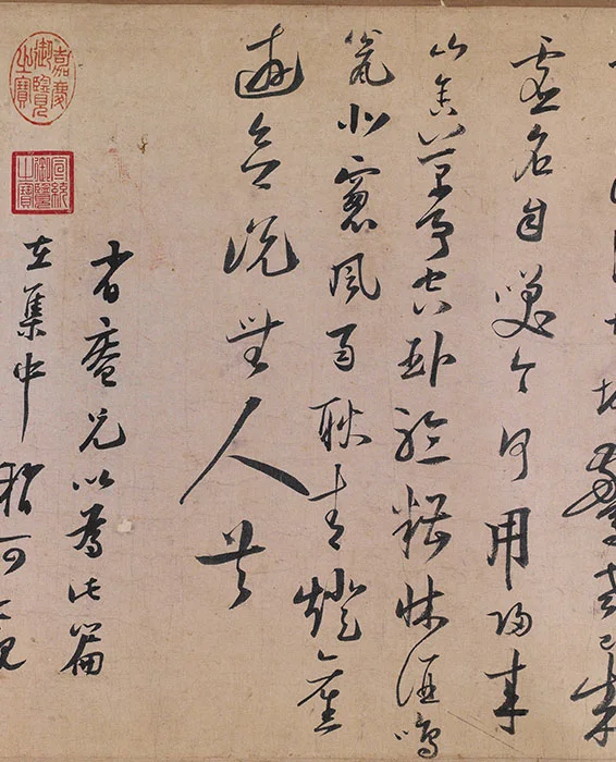 后纸有明陆釴、谢铎、程敏政、王鏊、周经、杨循古、沈周题跋。卷中钤有清乾隆、嘉庆、宣统内府诸玺及“商丘宋荦审定真迹”、“陈宗后印”等鉴藏印章。著录于《装余偶记》、《石渠宝笈》。