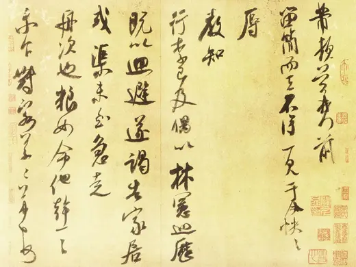 芾:箧中怀素帖,如何?乃长安李氏之物。王起部薛道祖一见,便惊云:自李归黄氏者也。芾购于任道家一年,扬州送酒百馀尊,其他不论帖。公亦尝见也。如许,即并驰上。研山明日归也,更乞一言。芾顿首再拜。景文隰公阁下。
