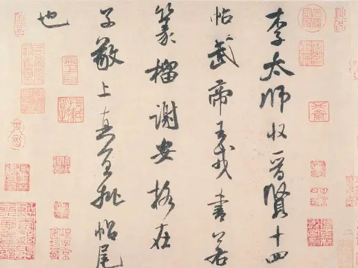 芾:篋中懷素帖,如何?乃長安李氏之物。王起部薛道祖一見,便驚云:自李歸黃氏者也。芾購于任道家一年,揚州送酒百餘尊,其他不論帖。公亦嘗見也。如許,即併馳上。研山明日歸也,更乞一言。芾頓首再拜。景文隰公閣下。