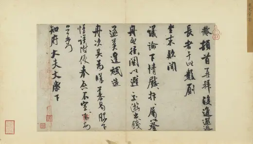 宋四家墨宝册,宋米芾致彦和国士尺牍,本幅30.1x42.6厘米,米芾,行书,纸本,台北故宫博物院藏。